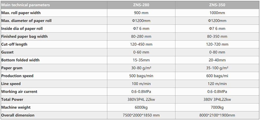 The servo system and PLC control system used in the machine are Mitsubishi imported from Japan, with a high degree of automation. The length of the paper bag can be replaced easily and quickly through the touch screen of the man-machine interface. The machine has the advantages of fast speed, stable performance, strong durability, wide application range and convenient debugging and maintenance. The technical performance has reached the international advanced level, which greatly reduces the labor cost. It is the ideal equipment for the majority of paper bag manufacturers.