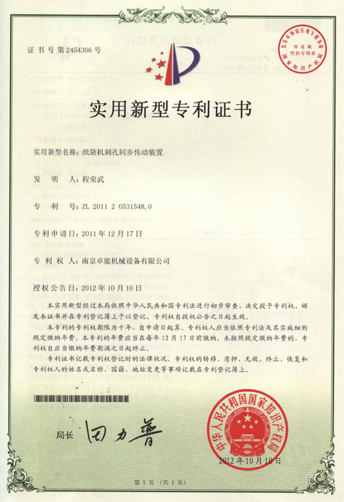 Certificado de patente de modelo de utilidad